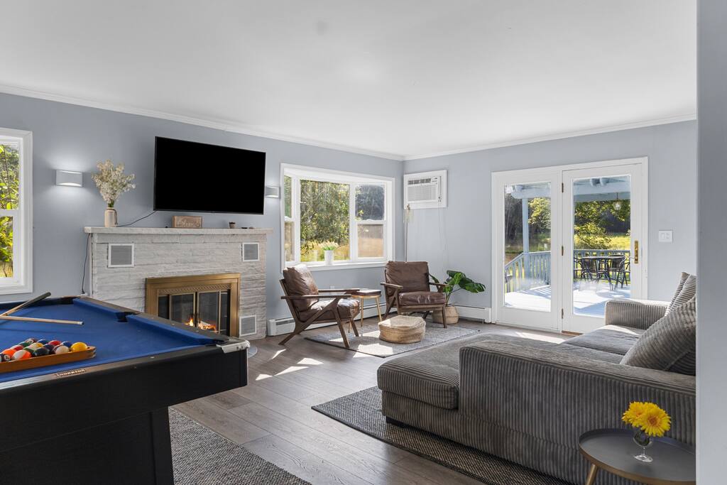 ✔ Five bedrooms with views of the greenery and pond ✔ Spacious living room overlooking the pool ✔ Game/family room with a pool table and views of the backyard and pond ✔ Open-plan kitchen and dining area with beautiful morning light ✔ 1,000-square-foot back deck off the radiant sunroom ✔ Children’s play loft with drum set, hockey table, games, and cozy nooks ✔ Piano and guitar in the music area near the foyer ✔ Large mudroom at the front entrance ✔ Many inviting spaces throughout the home to relax and unwind